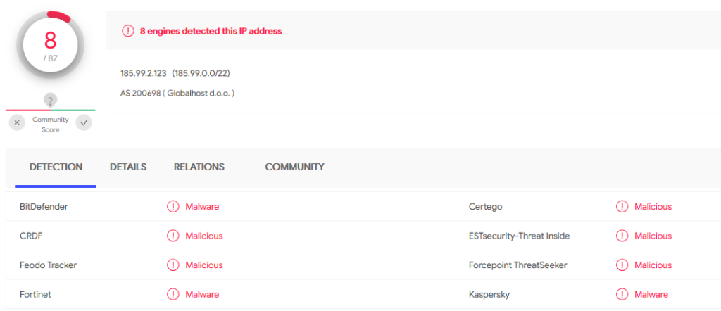 We can perform basic OSINT on the IPs returned below using tools like VirusTotal. Many of the IP addresses appear to belong to Microsoft, specifically Azure.